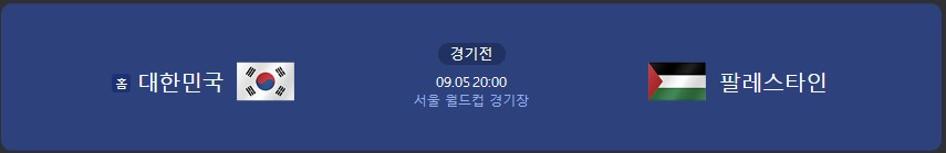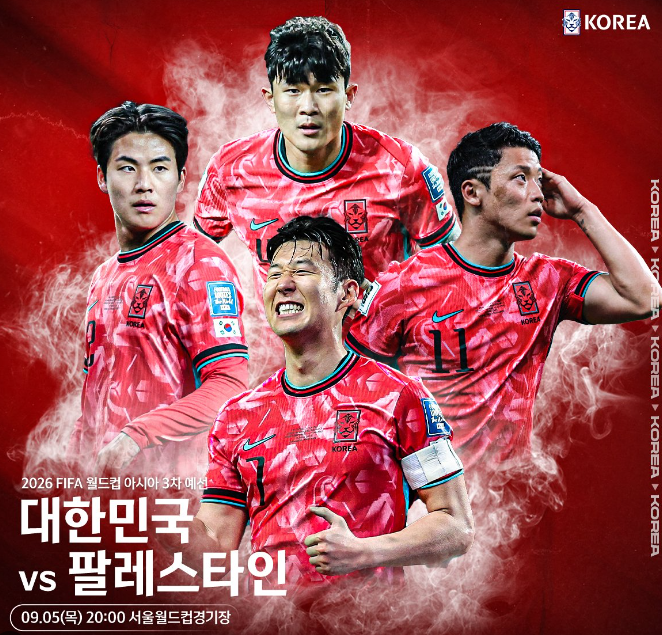 홍명보 감독이 이끄는 한국 A대표팀은 9월 5일 오후 8시 서울월드컵 경기장에서 팔레스타인과 북중미 월드컵 아시아 3차예선 B조 1차전을 치루게 됩니다.